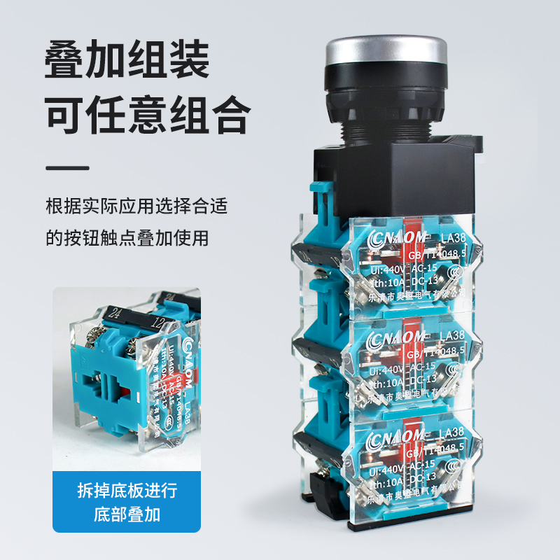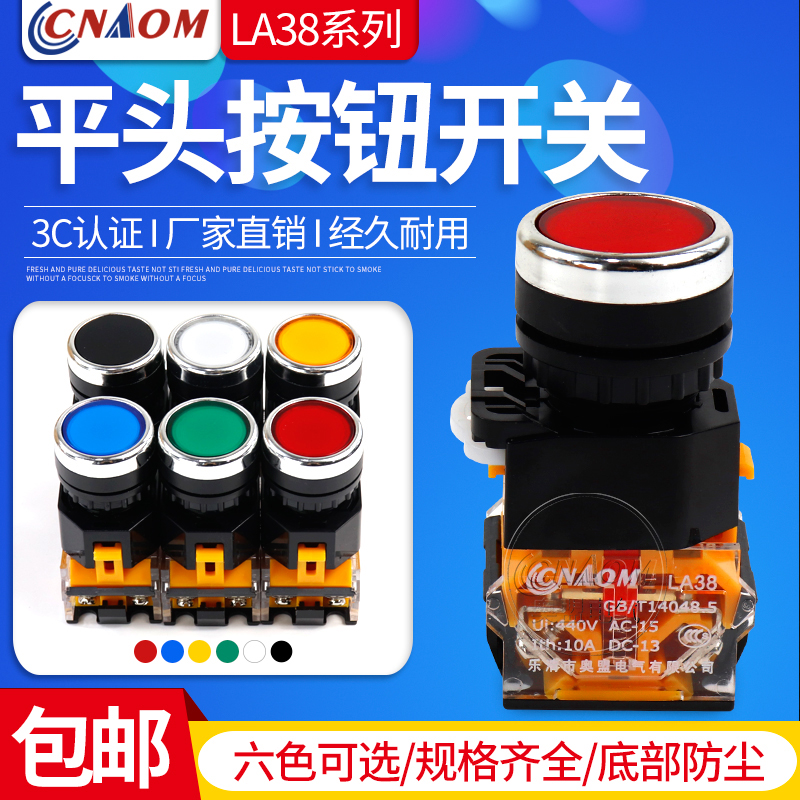 Red Green Yellow Blue White Black Auxiliary contact (one open and one closed) Auxiliary contact (two normally open) Auxiliary contact (two normally closed)LA38 Red bottom pause LA38 Green bottom start LA38