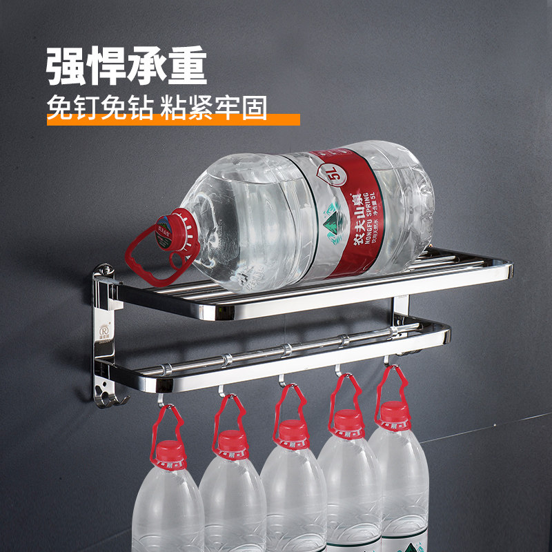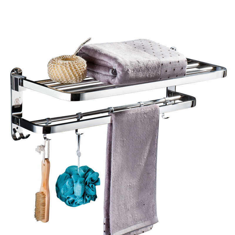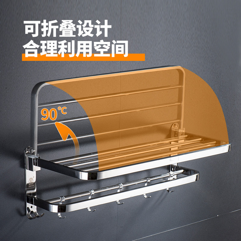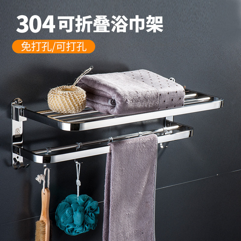304 stainless steel towel rack Non-perforated powder room towel rack folding shelf Bathroom double thickened hotel