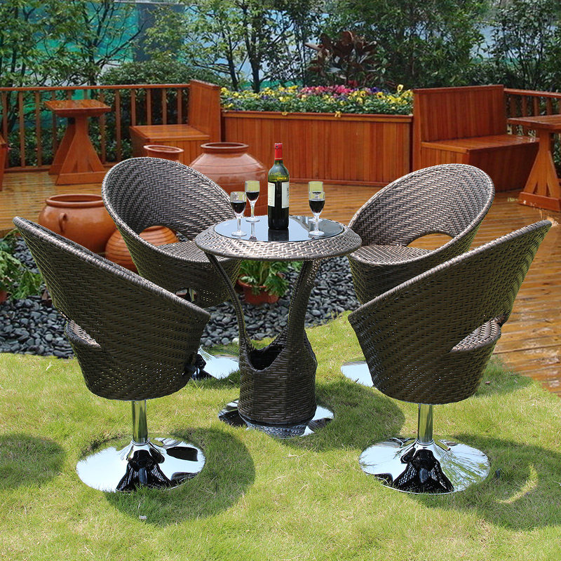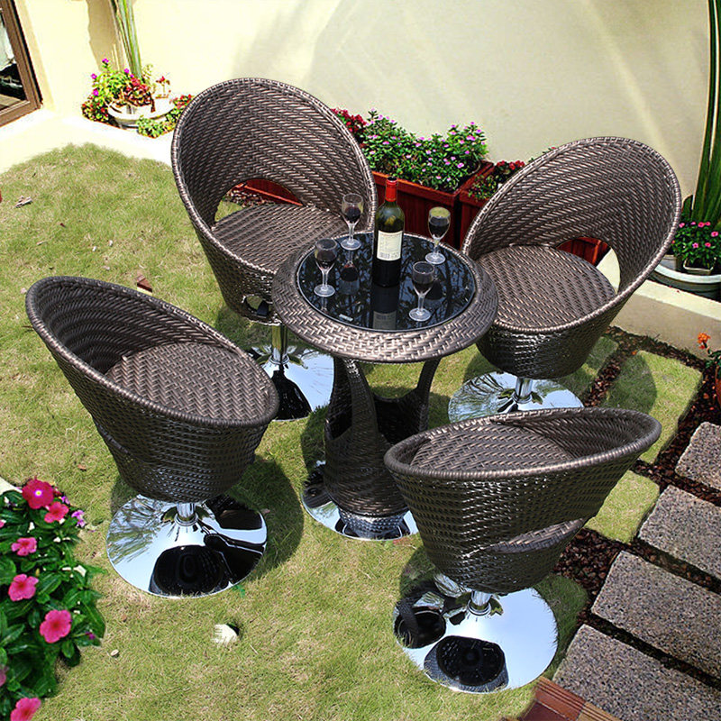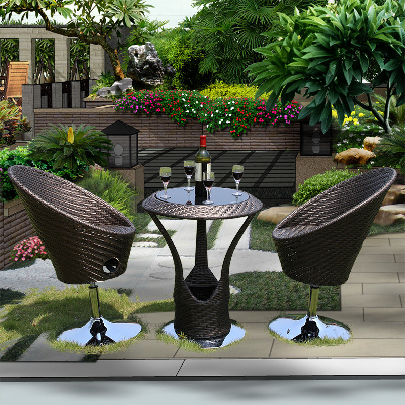 Balcony Small Table And Chairs Home Creative Swivel Rattan Chair Net Red Folk outdoor leaning back chair Tea table Mini rattan round table