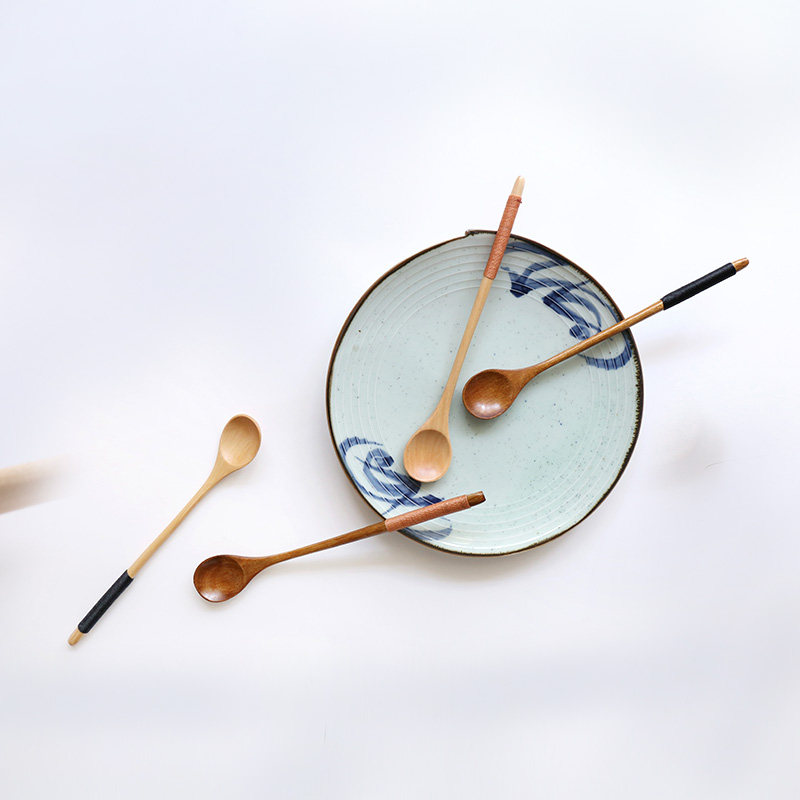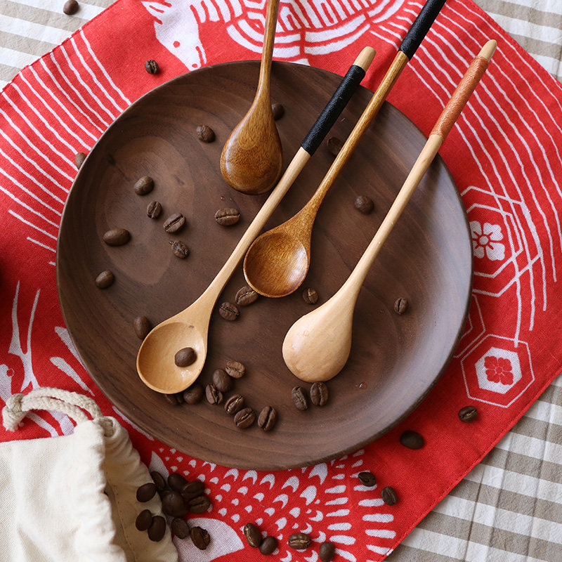 Shery long handle stirring spoon ice cream honey sweet spoons coffee stirring small wooden spoon solid wood cold drink spoon