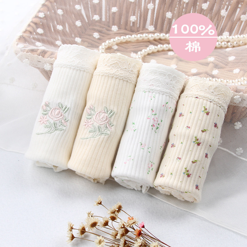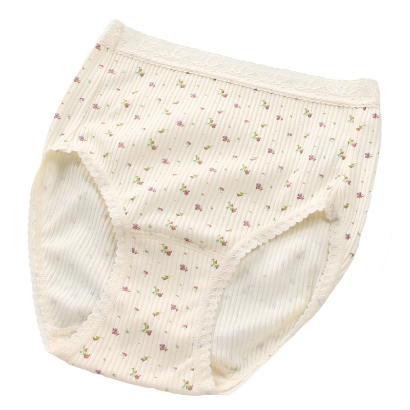 4 Japanese underwear women's cotton mid-high waist large size women's briefs cotton pregnant women postpartum lace shorts