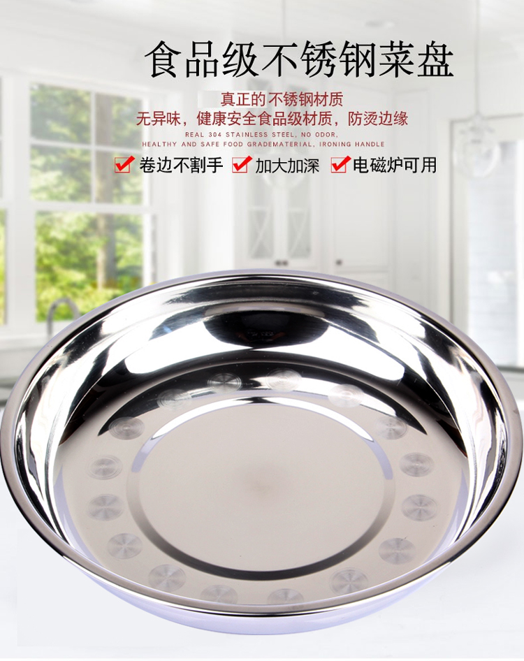 Stainless steel saucer thickened Deepen dish Round Disc Nursery Dishes Home Disc Nursery School Children Cutlery Flat