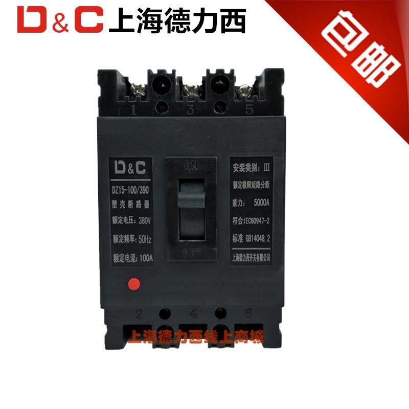 Shanghai Delixi switch 380V three-phase air open DZ15-390 290 air switch plastic shell circuit breaker 100A