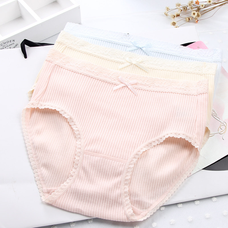 Solid Color Threaded Cotton Large Size Bag Hip Comfortable Breathable Bow Pure Cotton Bottom Crotch Ladies Briefs Cotton