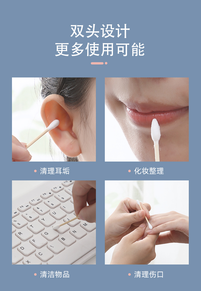 Tampon stick Double-headed wooden stick Antibacterial tampon stick Dust-free cotton swab Cotton swab Cotton swab round box bag