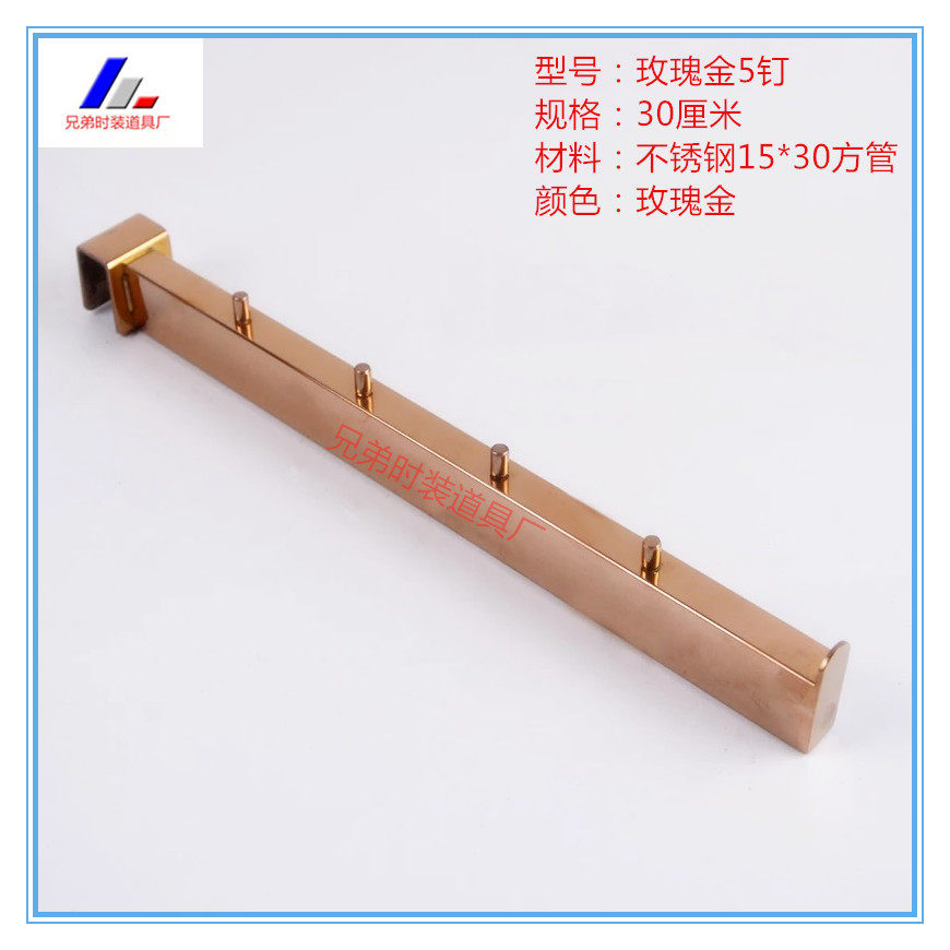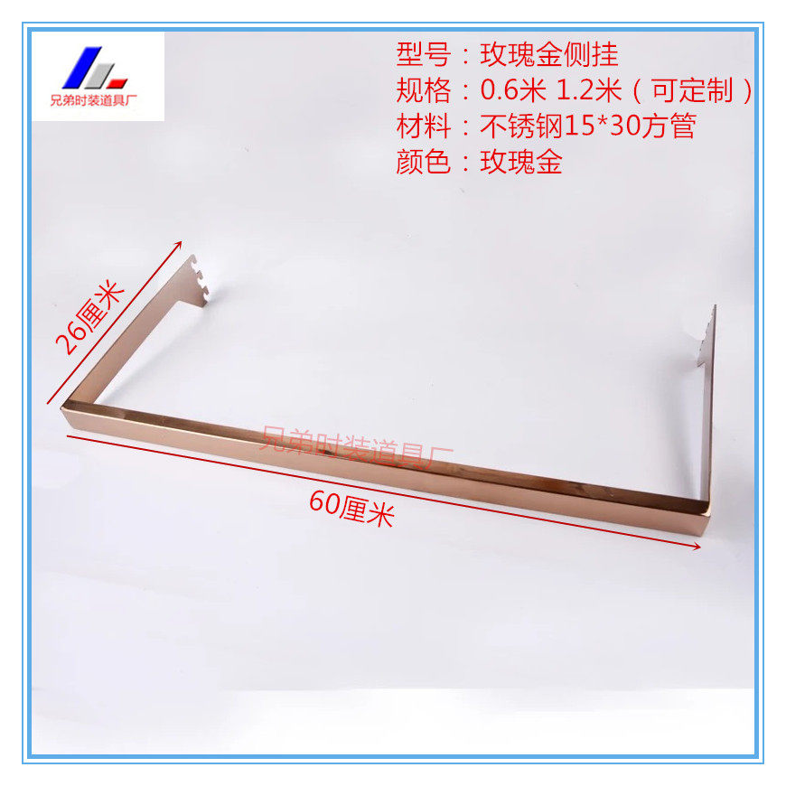 Clothing store wall rose gold hanger custom clothing bracket custom stainless steel clothing front side hanging display rack