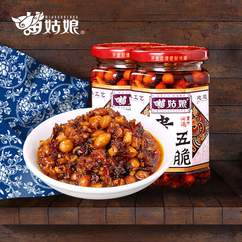 Miao Girl Soybean Peanut Flavor Five Crisp Oil Chili Guizhou Terrific Next Mix Noodles Sauce Super Spicy 250g * 2