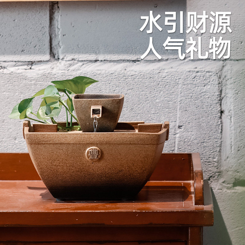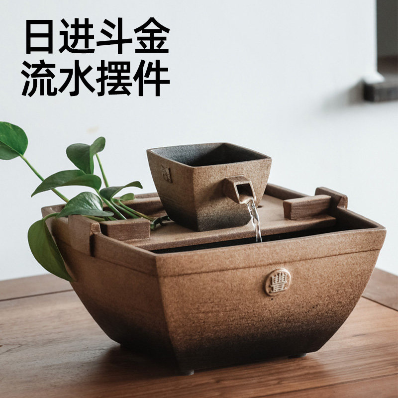 Fengshui Daily Down Pipe Fittings Ceramic Rough Water Humidifier Creative Household Fengshui Daily Down Gold Flow