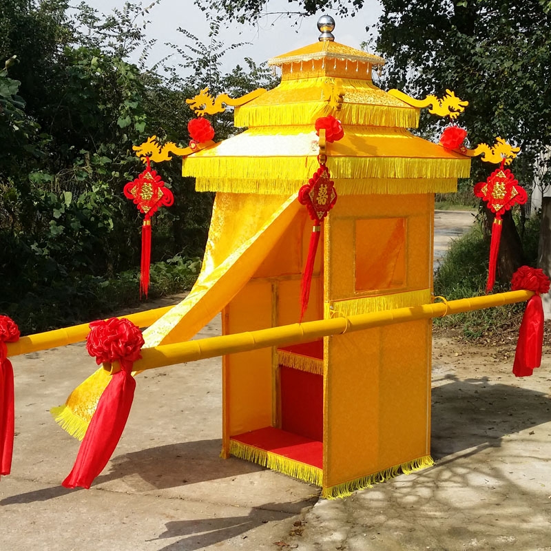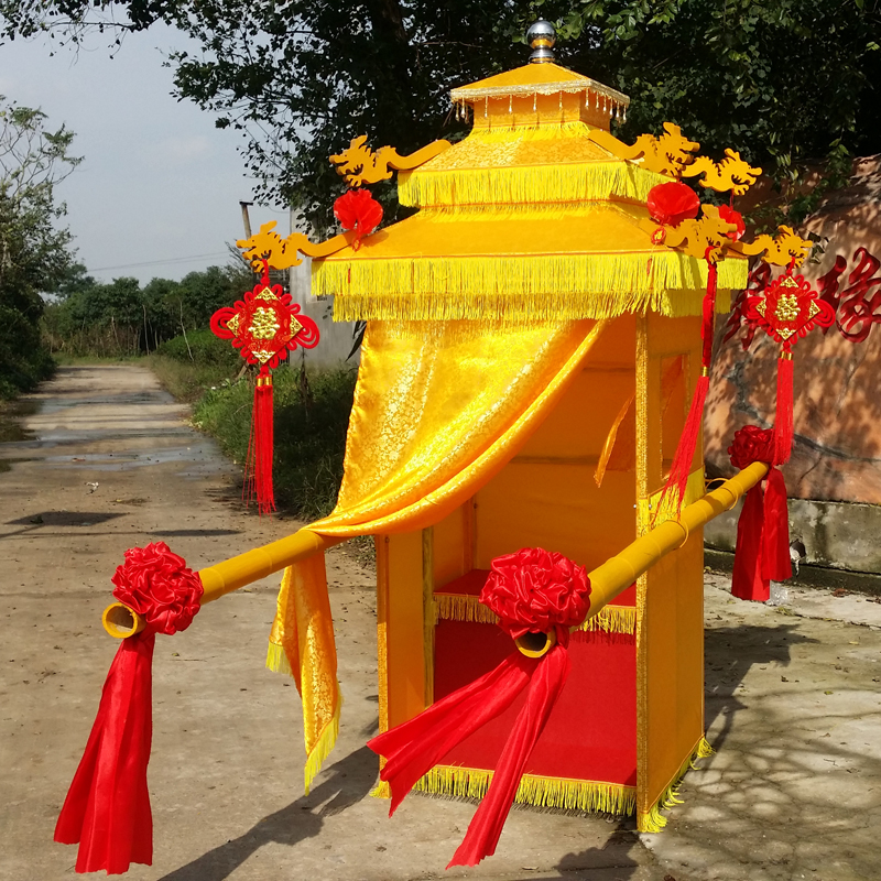 Golden wedding wedding film and television props Dragon Phoenix picture folding sedan chair chair Chinese bride and groom yellow new product