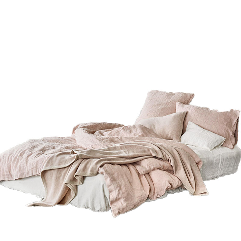 Luxury quality 100% hemp HEMP warm pink pillowcase bed sheet bedding set can be customized solid color