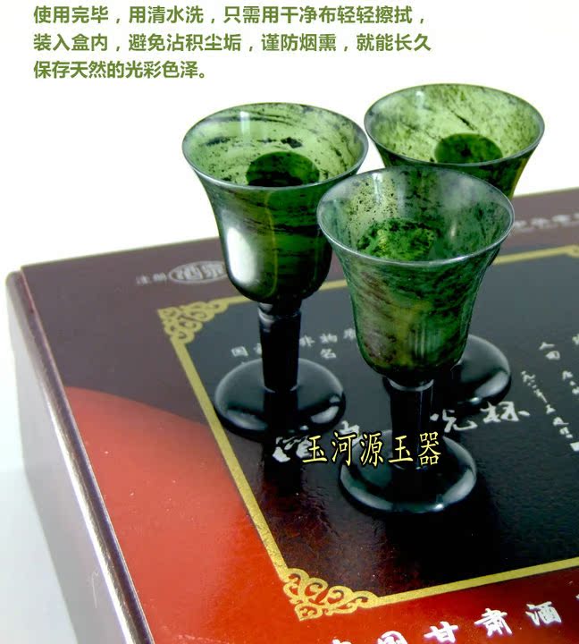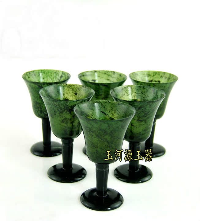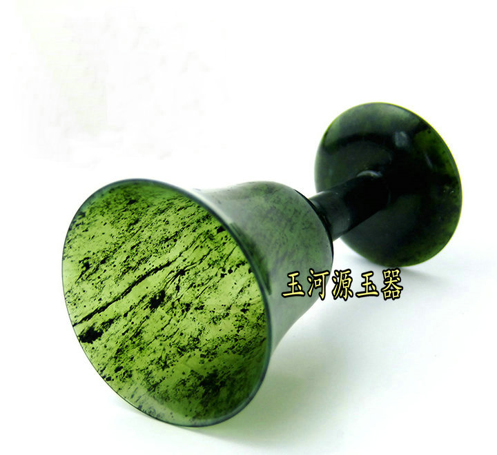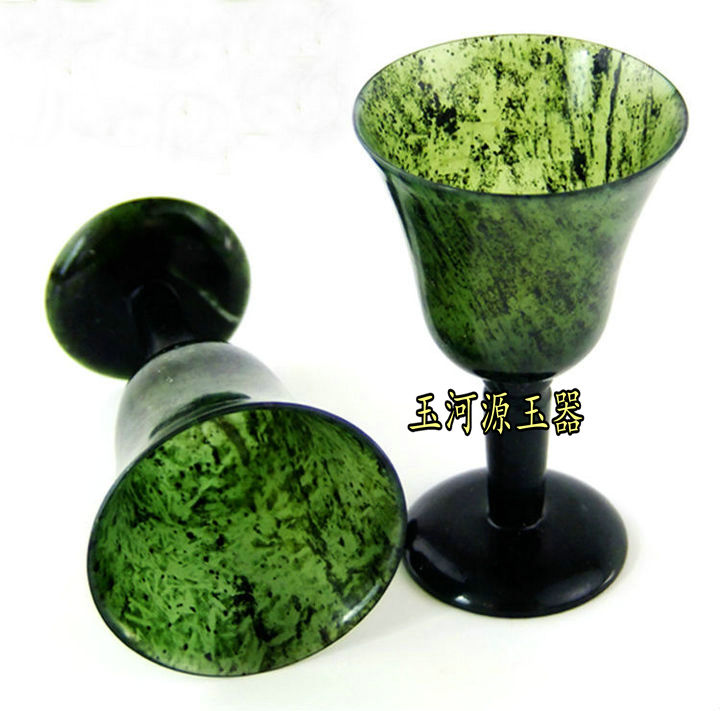 Natural live magnetic wine spring Qilian ink green jade high foot cup serpent stone jade wine with special price