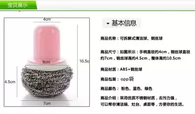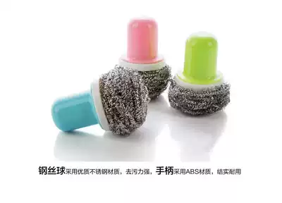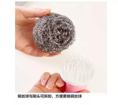 Creative kitchen handle wire ball replaceable brush head dishwashing brush strong decontamination round pot brush housework brush
