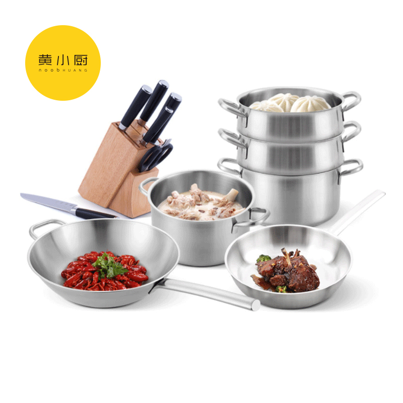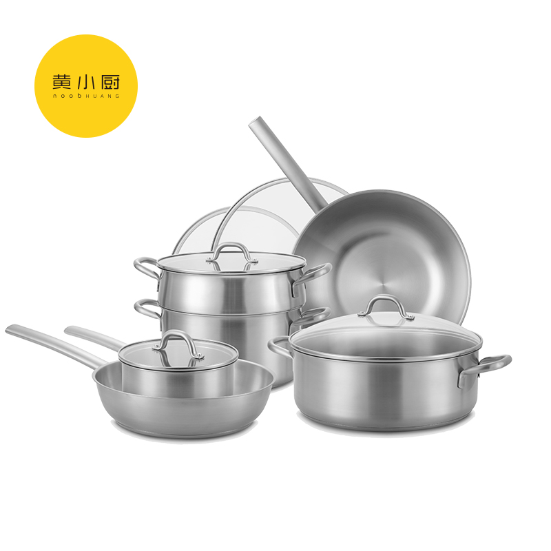 Yellow small kitchen stainless steel pot set combination household fried soup milk pot steamer
