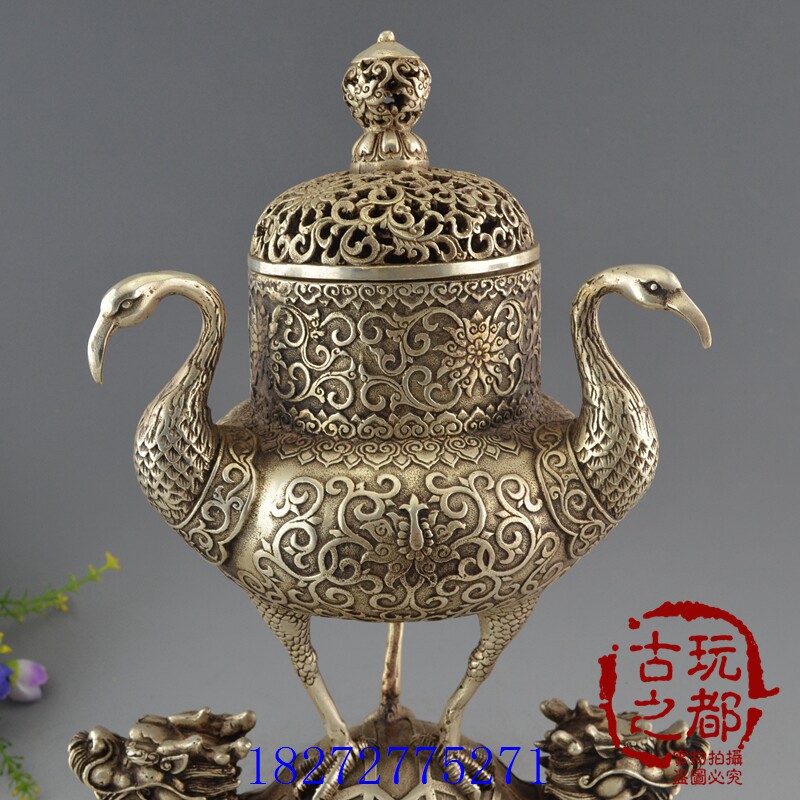 Hot - selling brass silver copper - plated copper - plated antique decoration gifts Antique - playing collection of turtle crane aroma furnace home