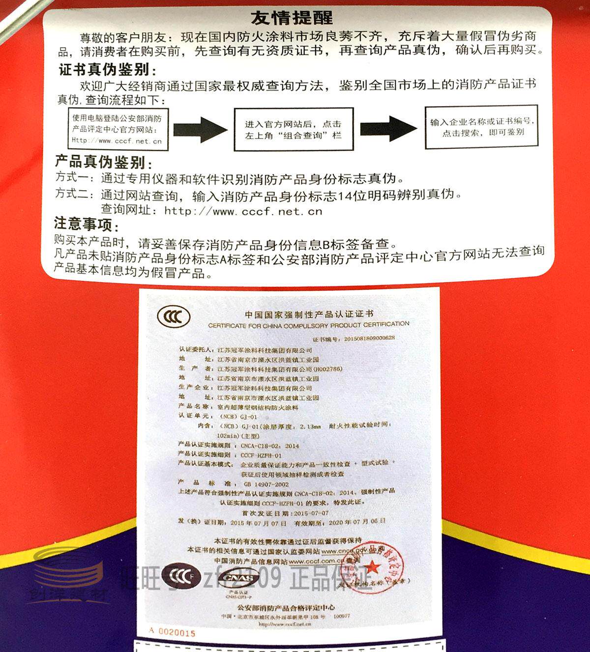 Whale Sea Paint 01 Type Indoor Ultra Thin Steel Structure Fire Protection Paint Special Paint Fire Certification 20KG