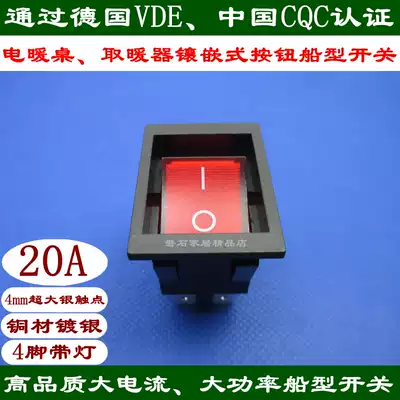 Heater electric heating table high current high power rocker switch 4 feet with light sink type inlay button 20A