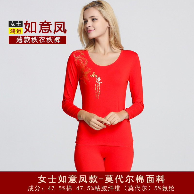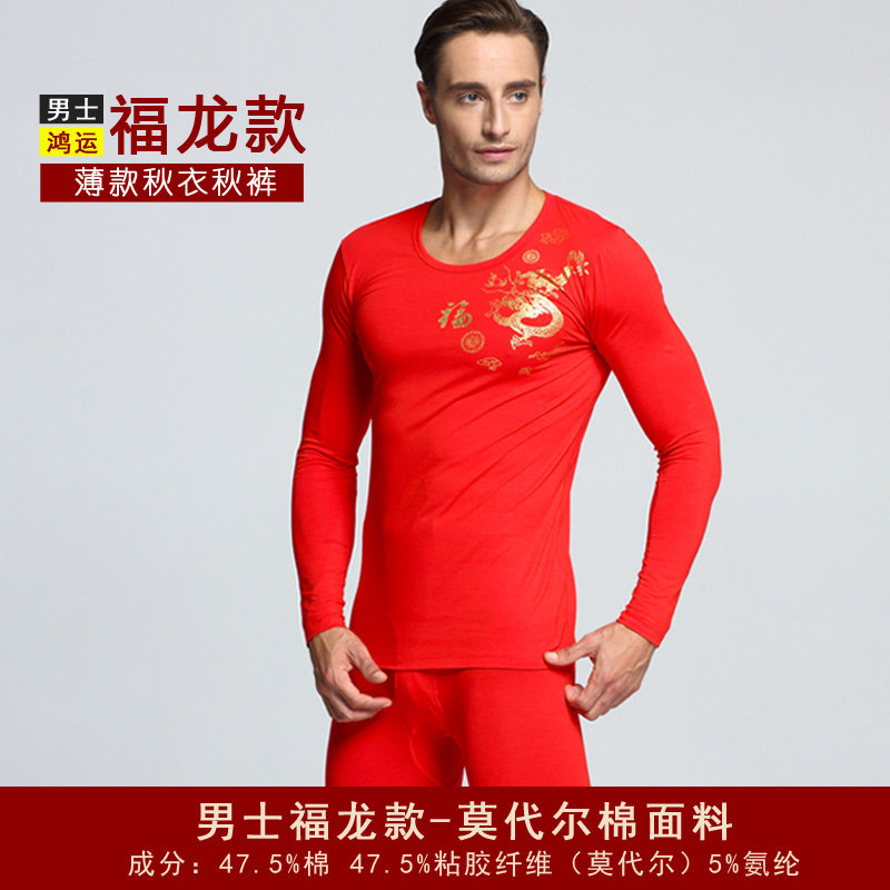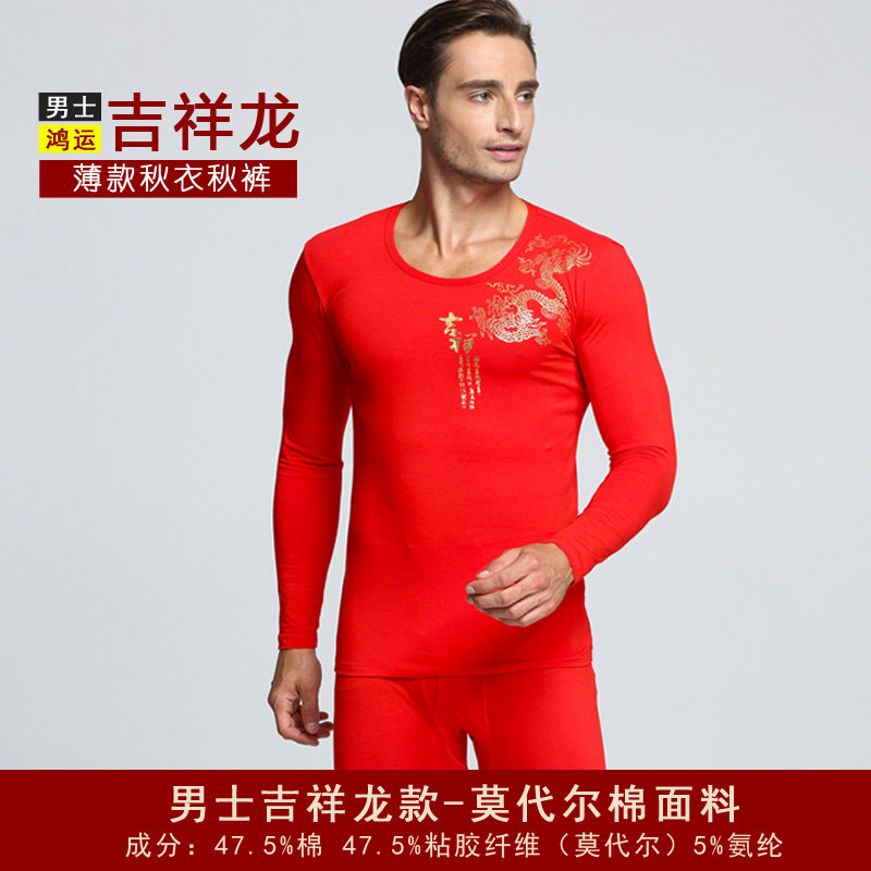 Male and female large red autumn clothes sanitary pants married this life-year thin MoDel cotton Longfeng Wedding Lovers Underwear suit