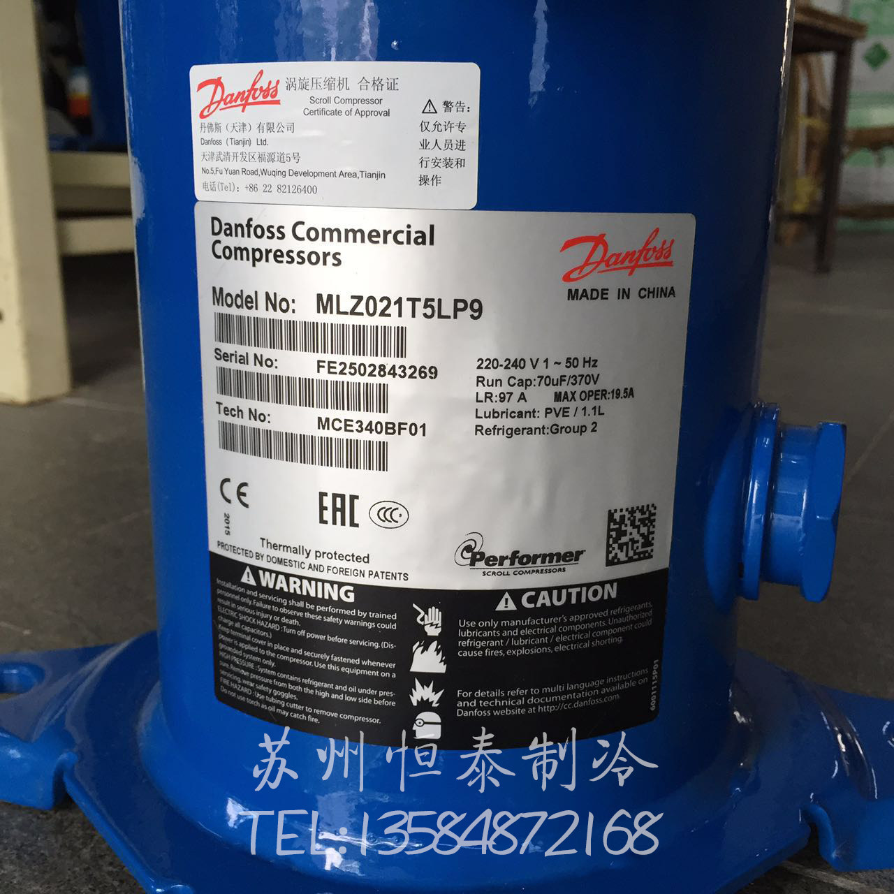 Danfoss Compressors MLZ021T5LP9 3 Frozen Scroll Compressors Totally Enclosed Air Conditioning Refrigerated Depot