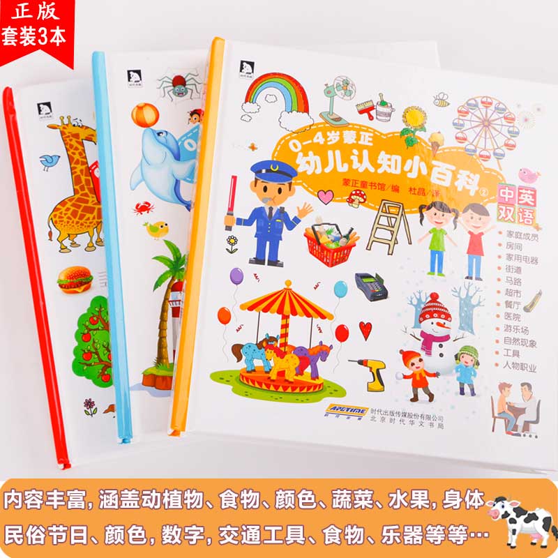 0-4-year-old young child Cognitive Small Encyclopedia all 3 books English bilingual book situation Cognitive Picture Picture Book Young Children Books 0-1-2-3-4-year-old infant enlightenment Cognitive Plotter tearing up early to teach 0-3 years old