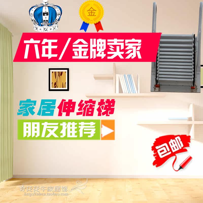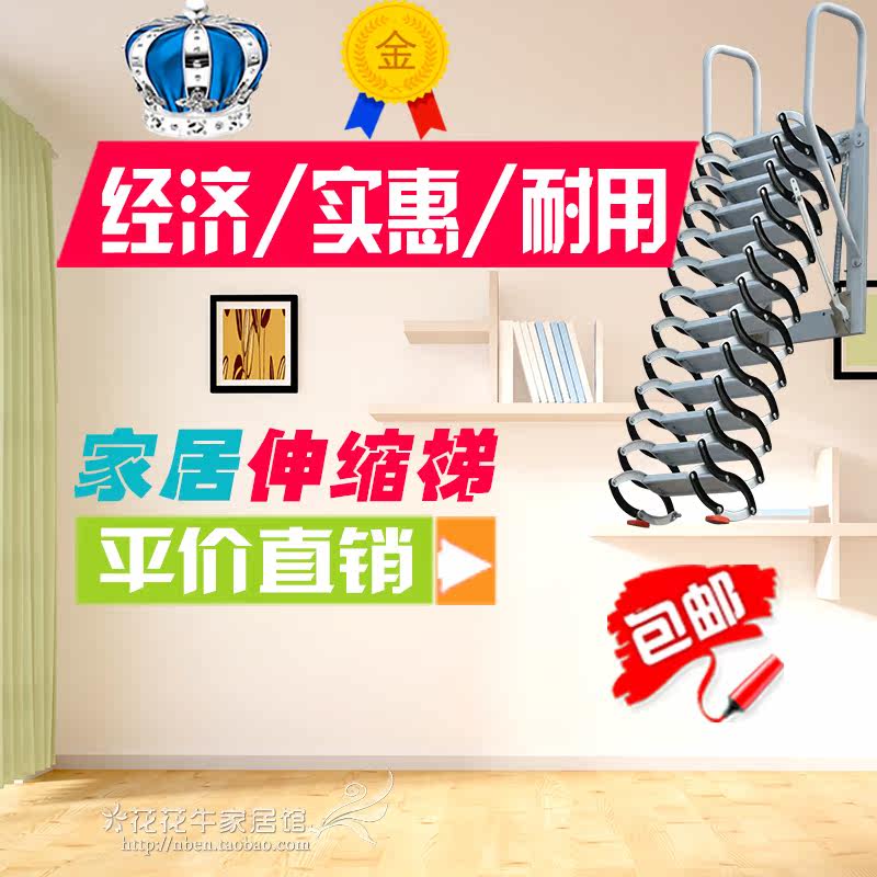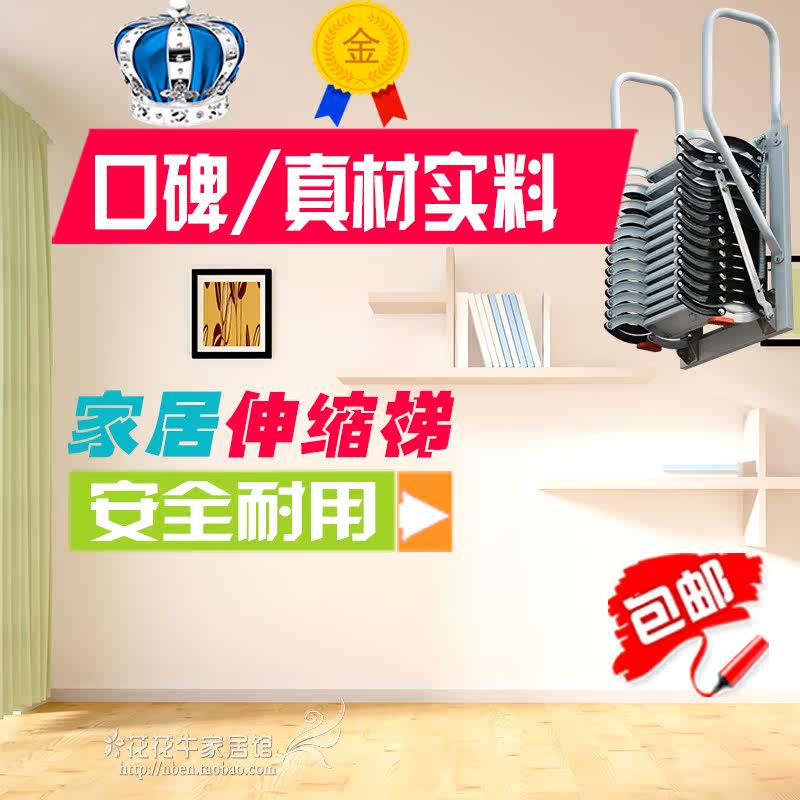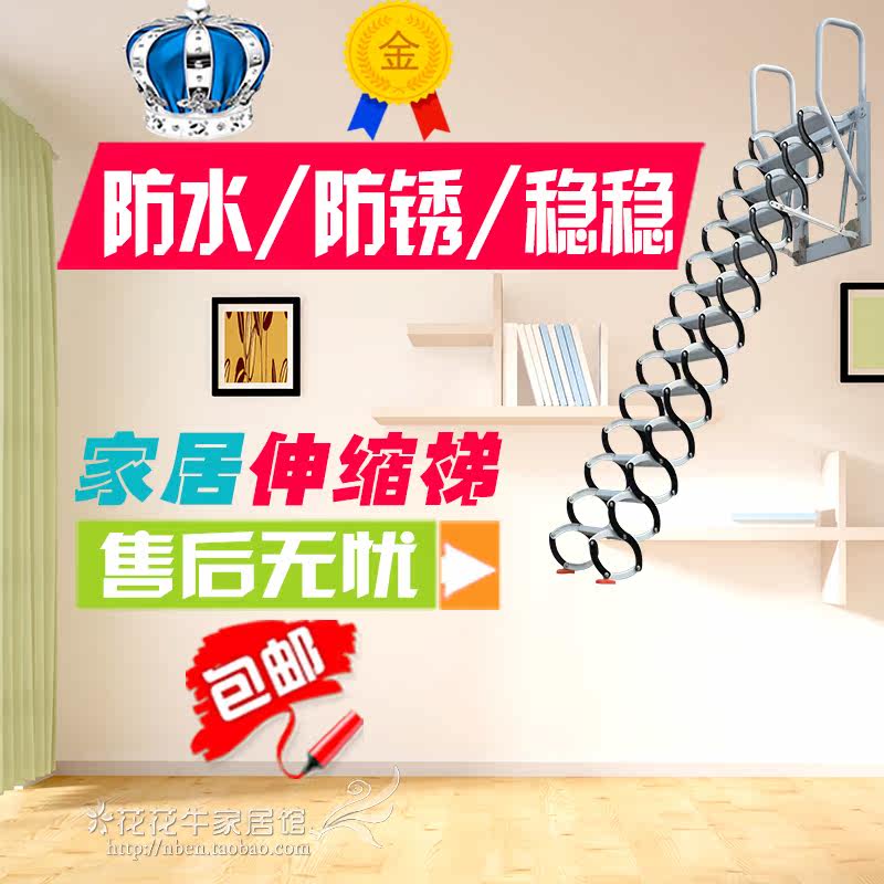 Attic wall-mounted telescopic stairs Semi-automatic villa duplex household indoor and outdoor lifting folding extension and thickening custom