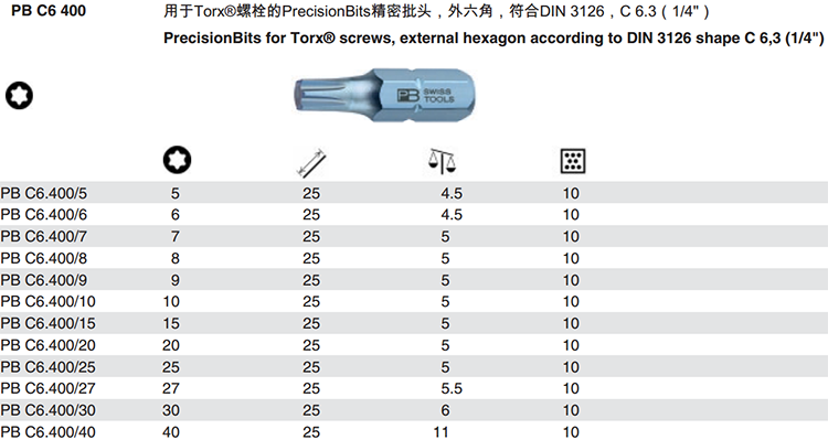 Swiss PB Swiss Tools C6 400 5 6 7 8 9 10 15 20 20 star Plum Batch Head