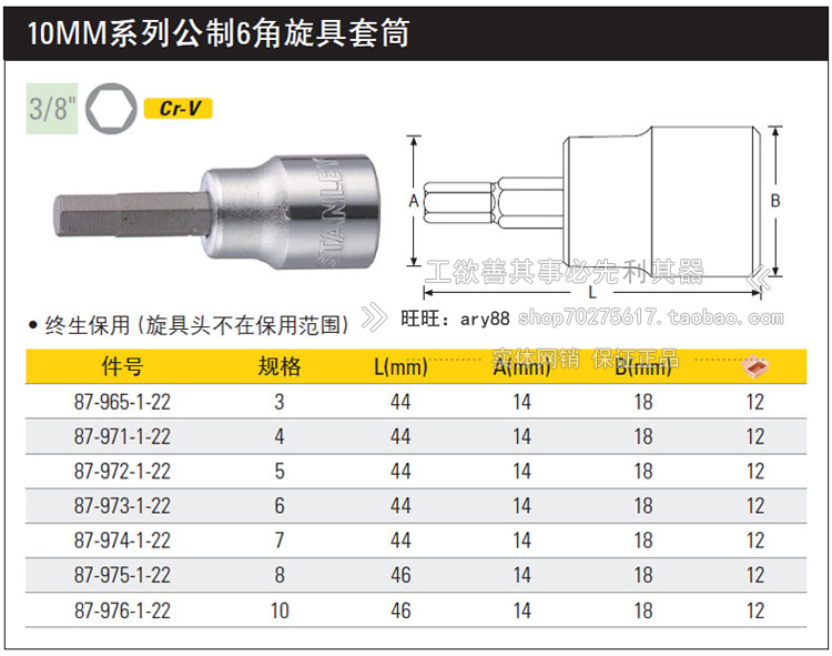 Stanley 10MM series metric 6-angle screw sleeve 3-10mm 87-971 972 973 975 976