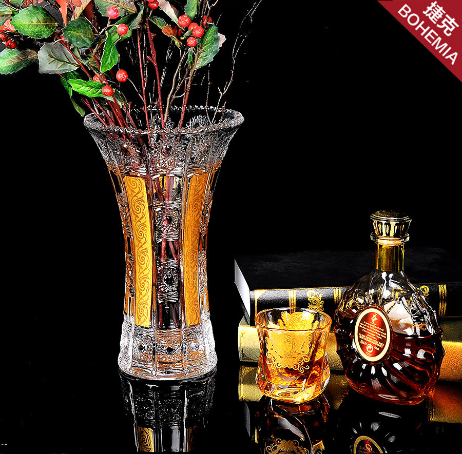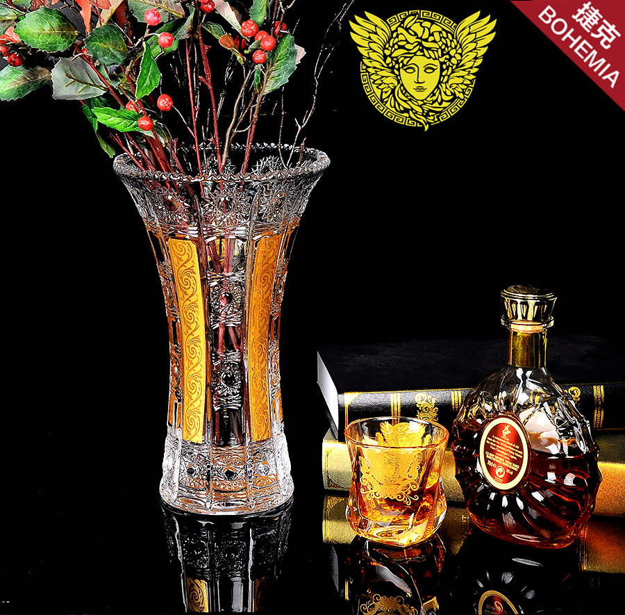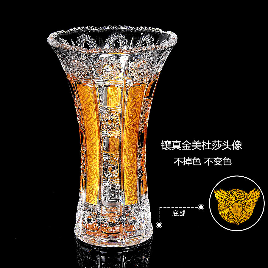 Living room limited-promotion Czech European style inlaid gold medusa crystal vases water pewter glass table face inserts vase