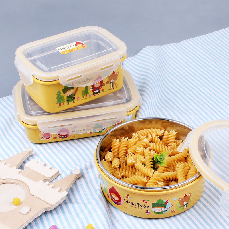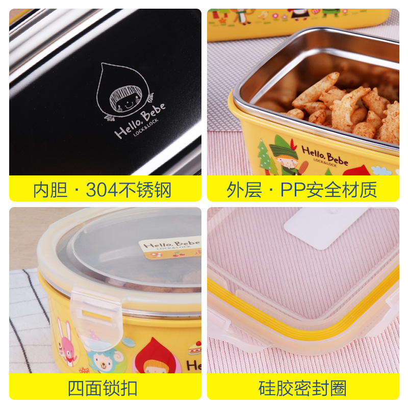 Lock lock stainless steel fresh box Student lunch box Fruit box Children cartoon cute lunch box original import