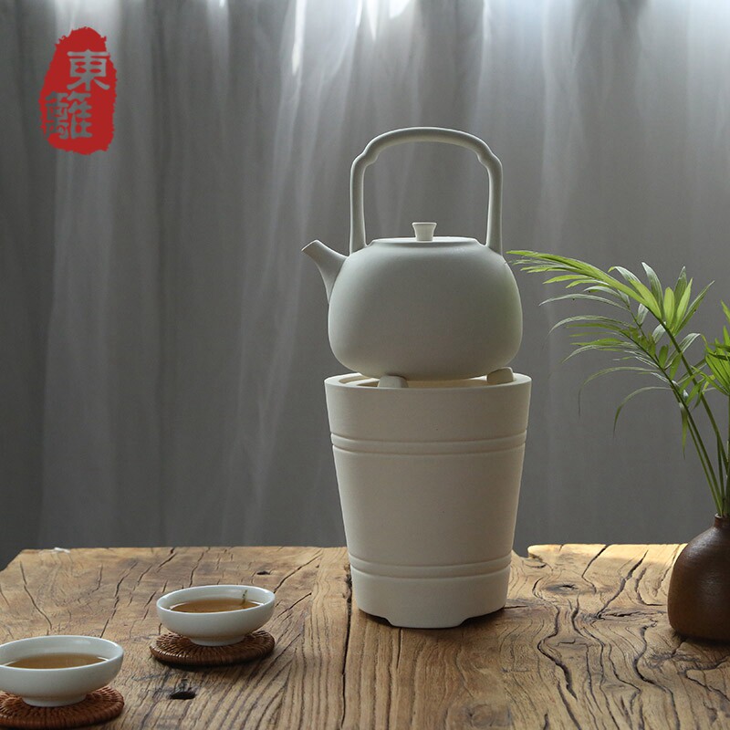 White clay charcoal stove lifting beam pot tea single pot set Japanese retro white clay pot sand coarse ceramic Chaozhou jade book simmering