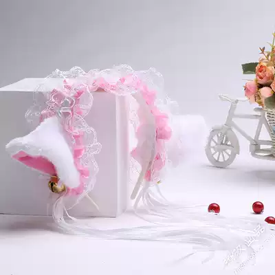 Cat lace bell hair band Cat ear bracelet Collar Bow collar Cat ear hair accessories set