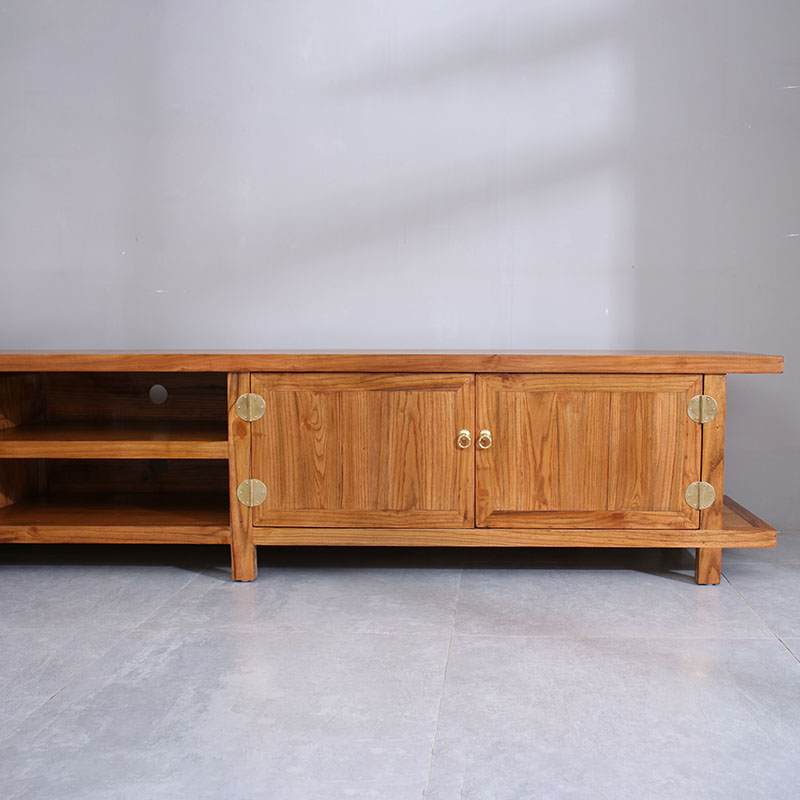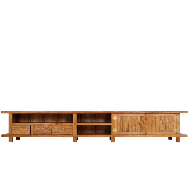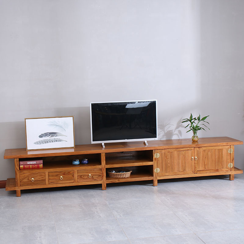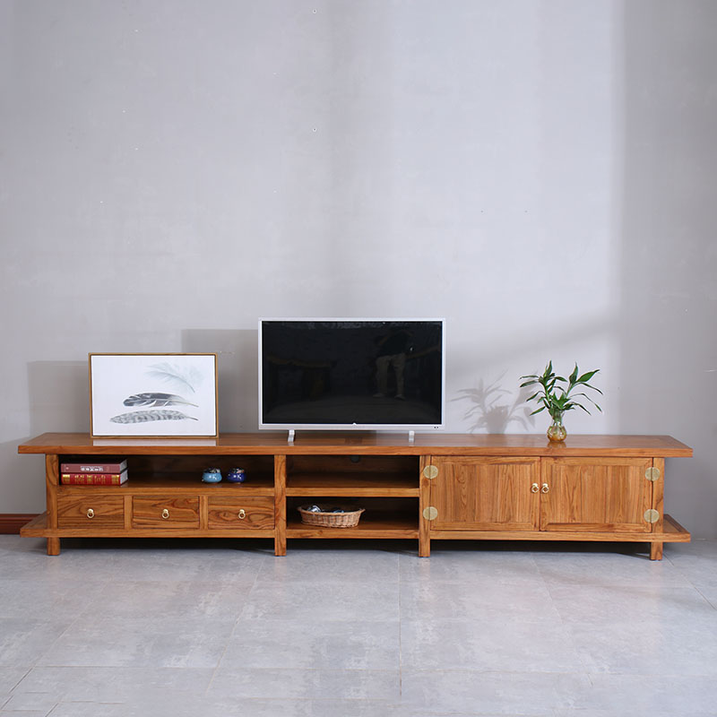 Solid wood TV cabinet living room 3 meters large TV cabinet video cabinet old elm modern Chinese low cabinet base cabinet