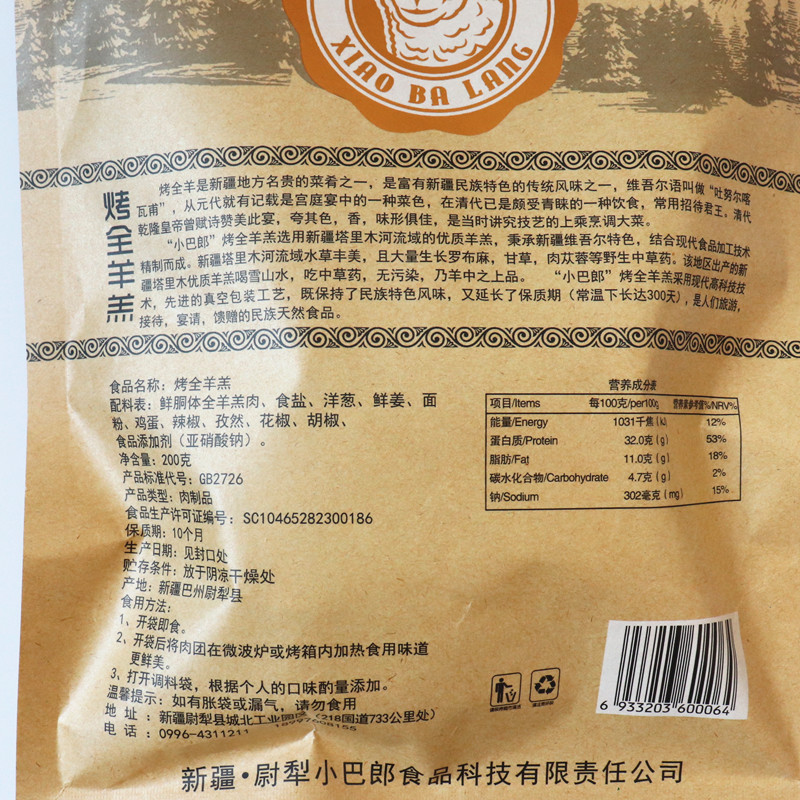 Xinjiang Special Warrant Officer Plow County Minibus Lang Roast Whole Goat 200 gr full of 2 bags