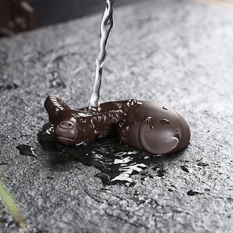 Black gold stone tea plate with raw mineral purple sand cow tea pet