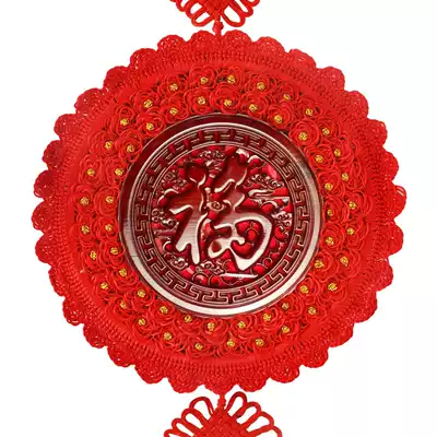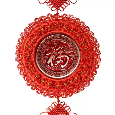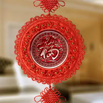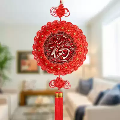 Chinese knot peach wood pendant Town house wall hanging blessing pendant Kangxi Fu housewarming gift Living room entrance decoration