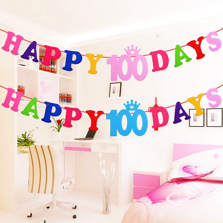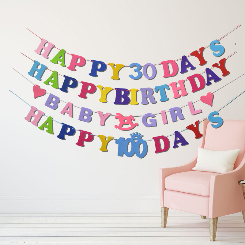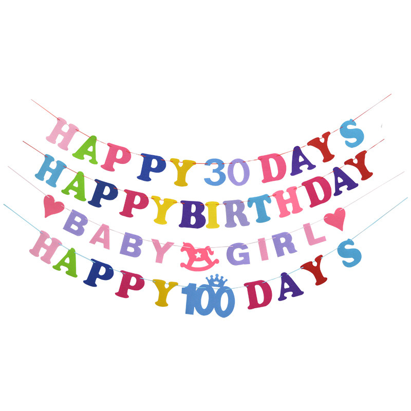 Unwoven Cloth Birthday Flag ten thousand days Canvas Bar Baby Double Full Moon Dress A Latte Flag Birthday Party Arrangement Laspend