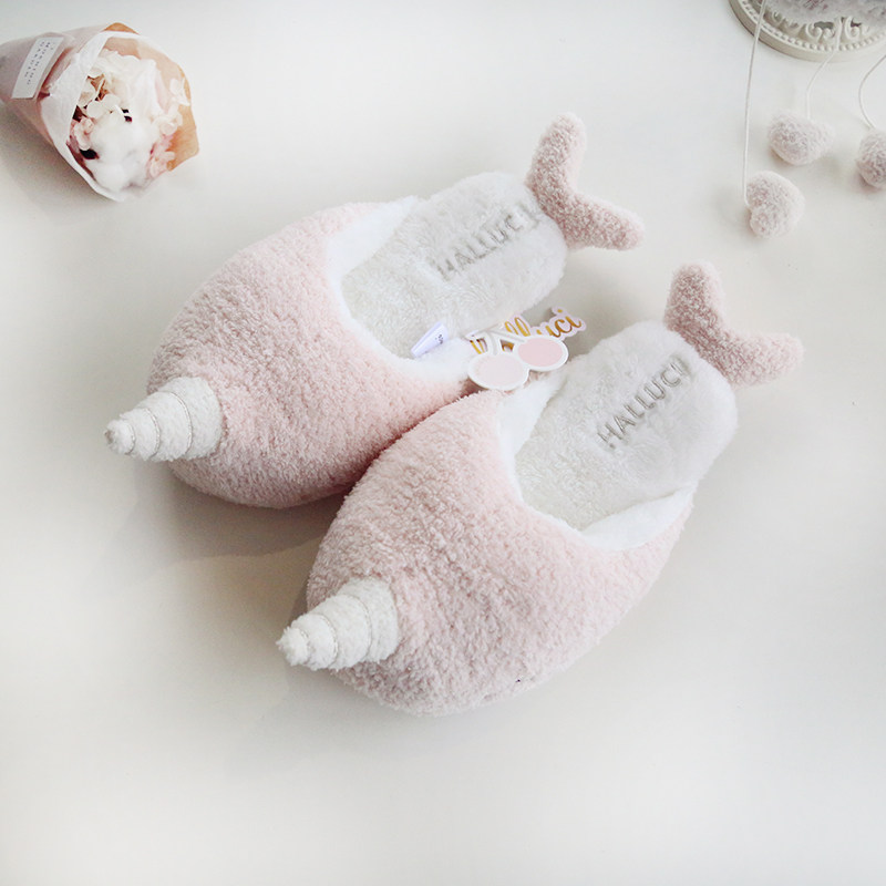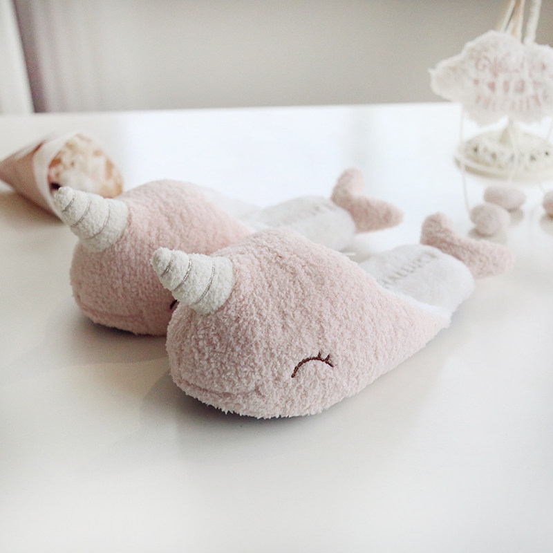 Autumn and winter cute narwhal soft warm bread big head slippers ladies home indoor cotton slippers