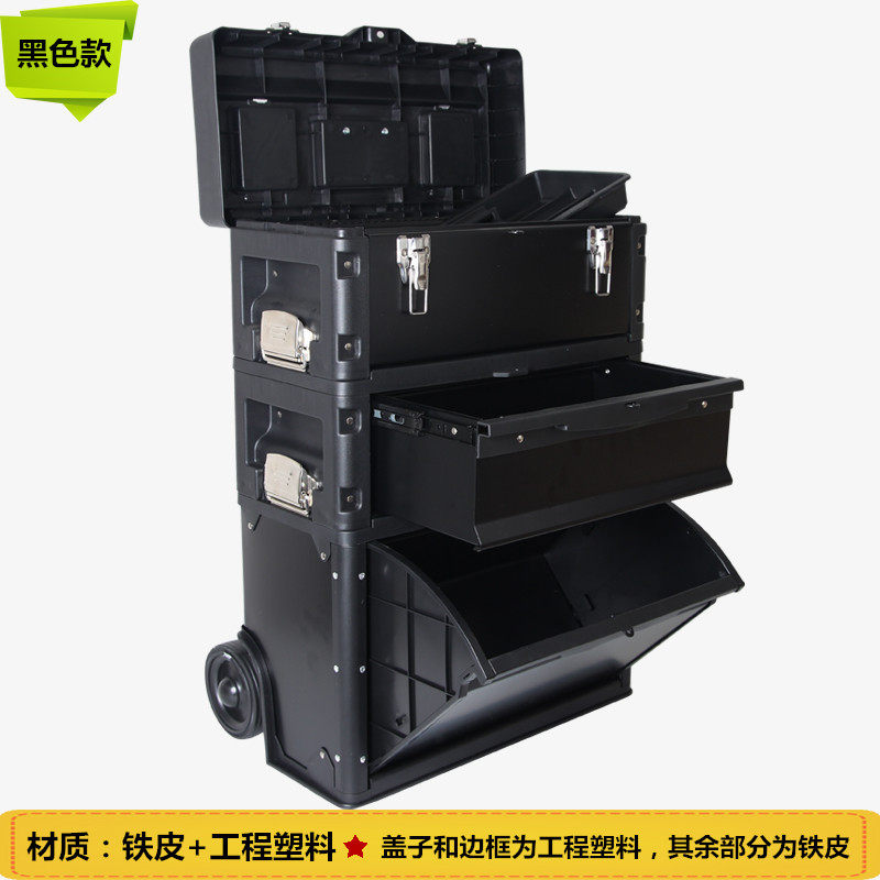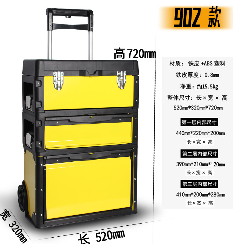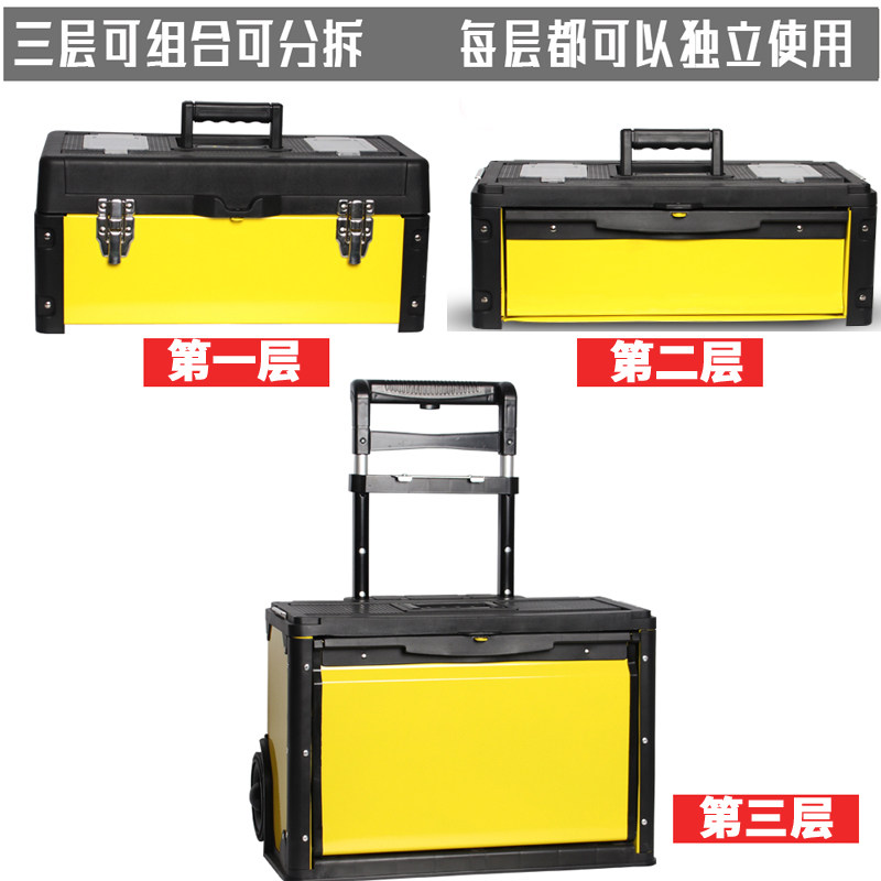 Three-layer toolbox Multi-function rod toolbox Hardware toolbox Large pulley removable tool cart