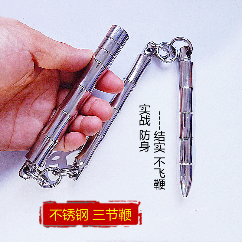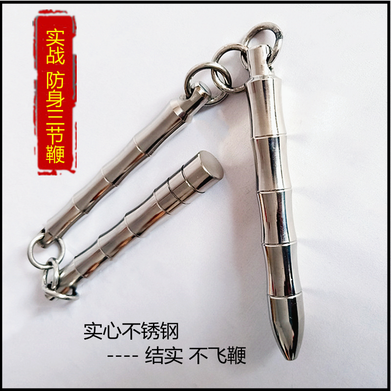 Women's self-defense practical three-section whip stainless steel sleeve whip nunchaku martial arts whip car-mounted solid three-section stick for broken windows