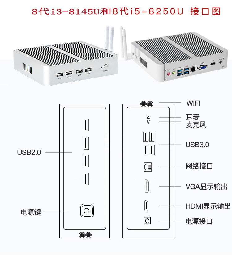 Zhanmei Core i3 8145U I5-8250U mini computer micro professional fanless host htpc game