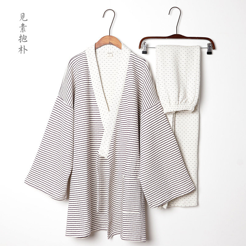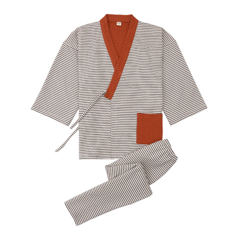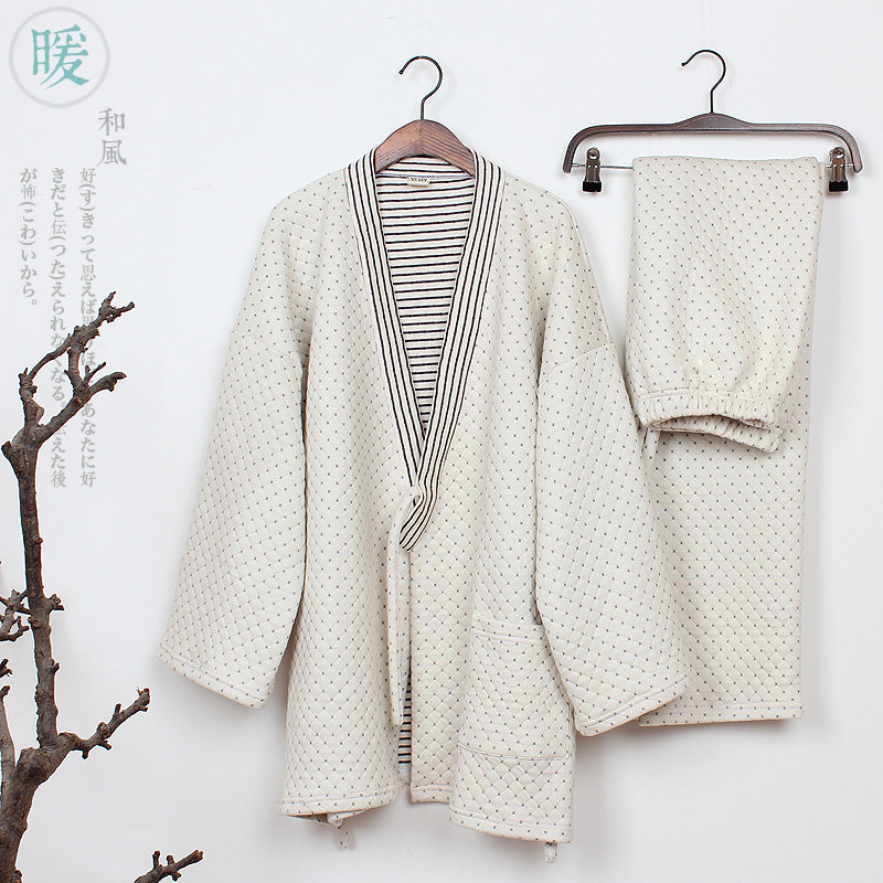 Antique autumn and winter cotton pajamas for men's three-layer warm homewear suit loose large size unprinted stripes