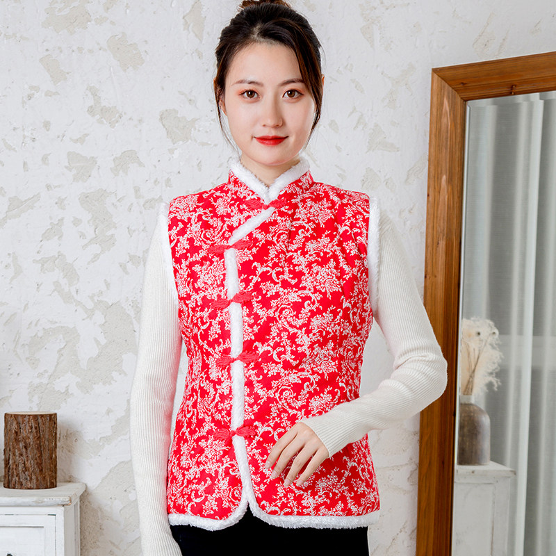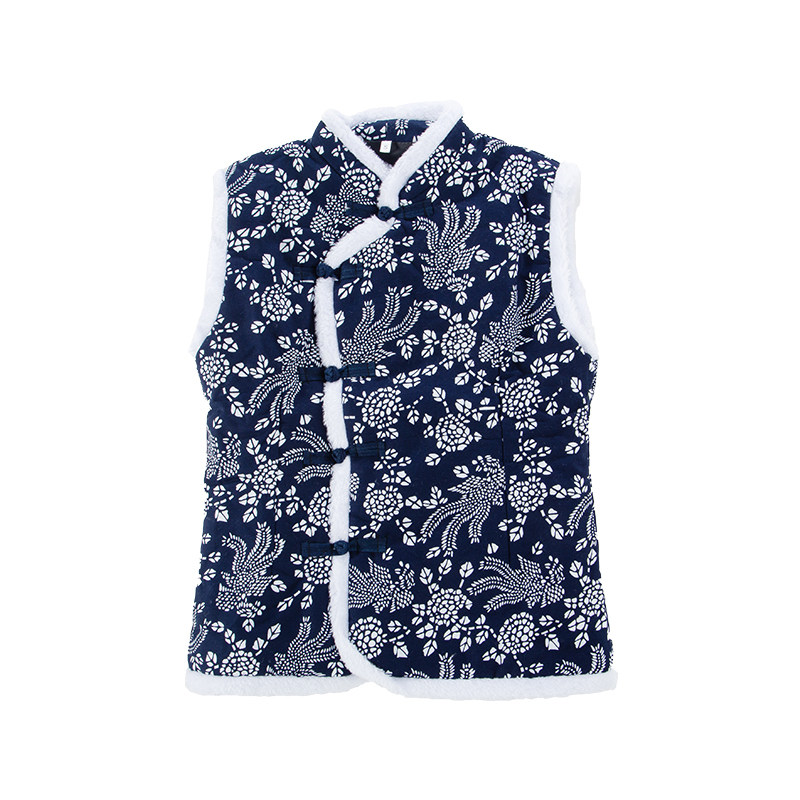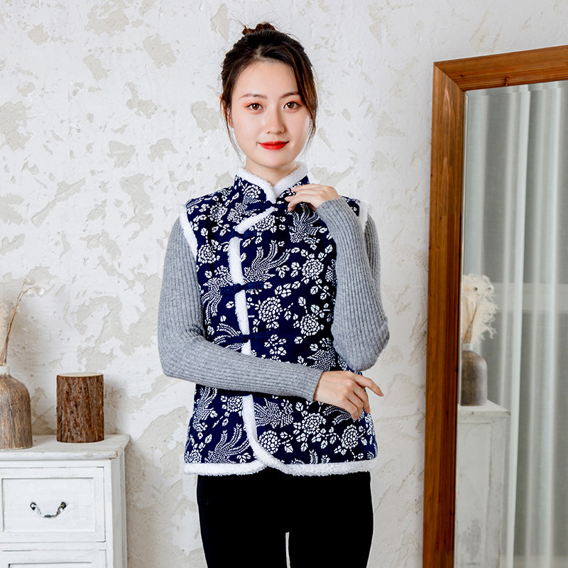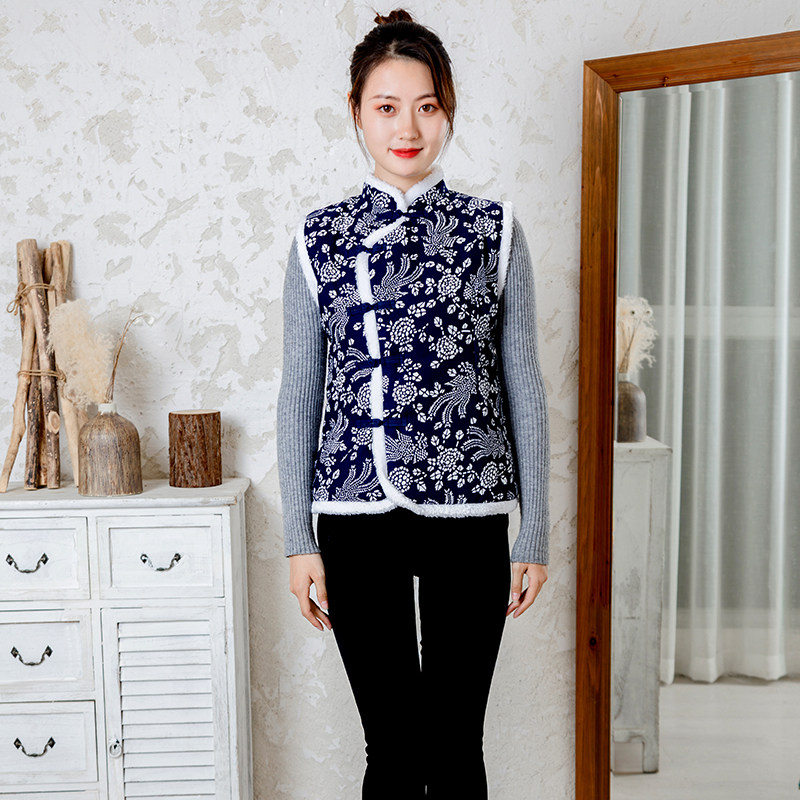 Cotton blue cloth middle-aged and elderly Tang suit Chinese cotton waistcoat women's disc buckle cotton vest retro ethnic style large size women's clothing