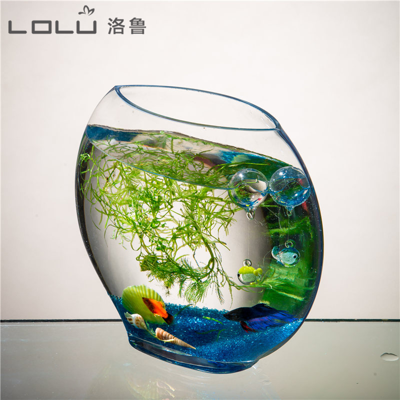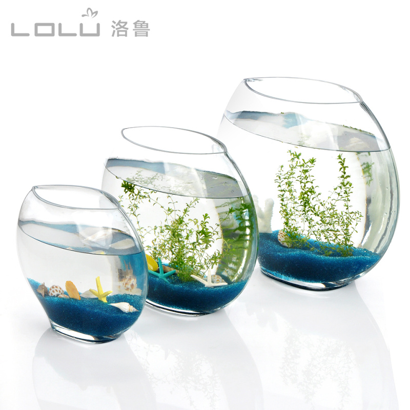 Glass fish tank round large number thickened flat round midsize gold fish tank Aquarium Tabletop Rigging Ecological Hydroppot