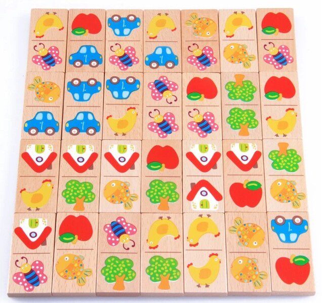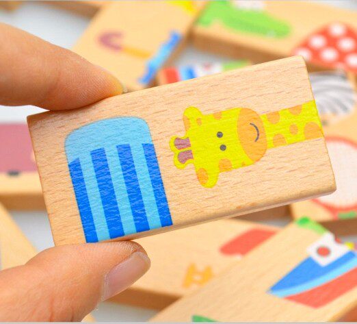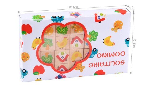 28 pieces of animal Domino solitaire Beech Toy Domino Chinese Character Literacy Puzzle Children's puzzle 2-3 years old gift