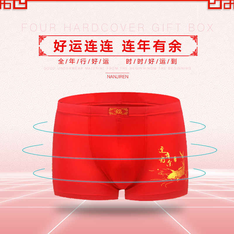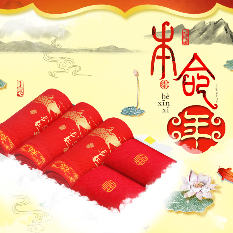 South Pole Man's Life Year Pants Pure Cotton Men's Big Red Briefs Wedding Four Corner Pants 3 Gift Boxes Clothing Red Socks