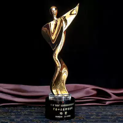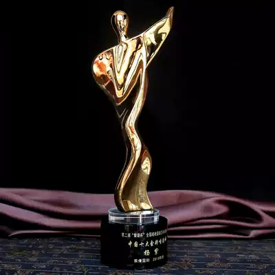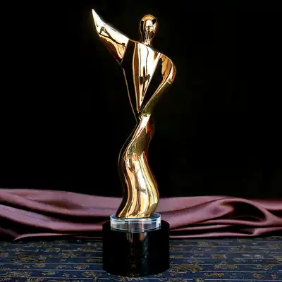 New resin trophy gold-plated crystal trophy custom small gold humanoid creative metal trophy custom lettering