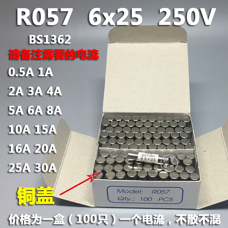 Ceramic fuse tube R057 RO57 6*25 250V BS1362 fuse core 13A 0 5~30A