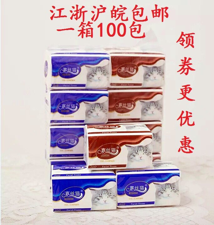 Jiasi cat paper toilet paper towel baby facial tissue log napkin 100 packs family pack full box
