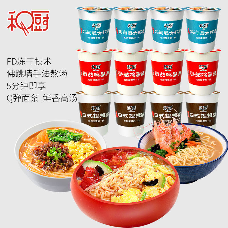 With cook seafood tomato egg noodle Japanese bearing nonfried nonfried noodle bubble bucket 12 cups