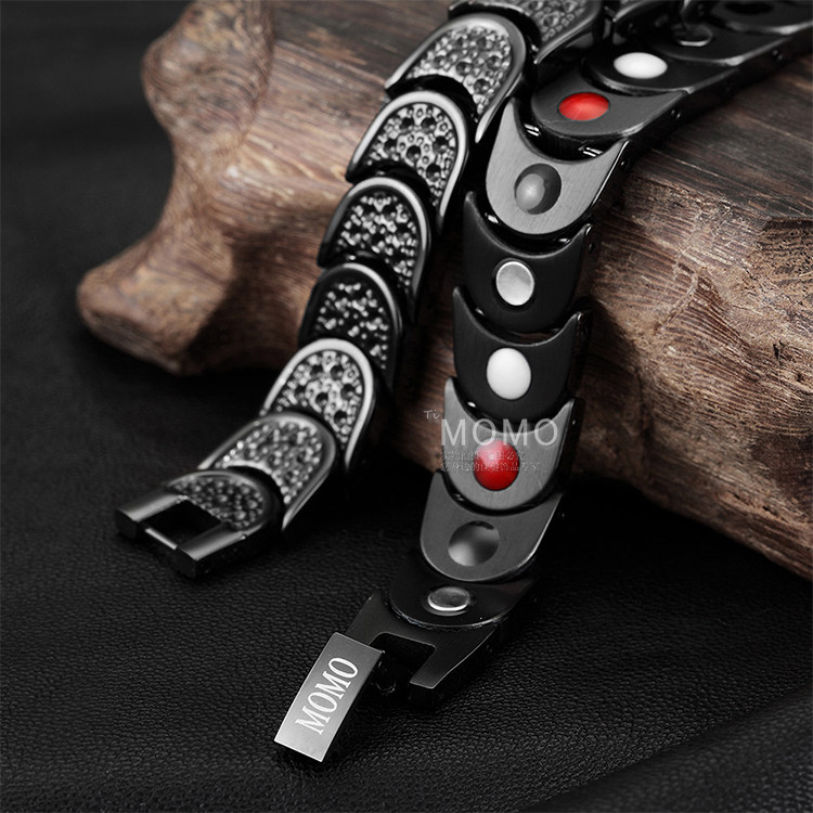 Japanese Titanium Germanite Handmade Healthy Fitness magnetotherapy anti-fatigue to improve sleep men and women's hand condensed black
