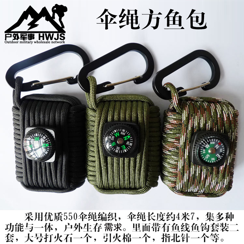 Wilderness begging for the field to take fire suit 550 Seven core umbrella rope outdoor fishing kit refers to the north needle escape square bag
